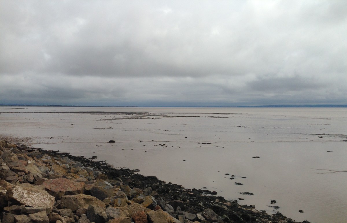 IMG-875 Published June 26, 2016 at 3264 × 2102 in WALK 24 : OVER THE BRIDGE TO WALES – FROM SEVERN BEACH, BRISTOL TO LLANTWIT MAJOR. ← Previous Next → The Severn Estuary; grey day, low tide.
