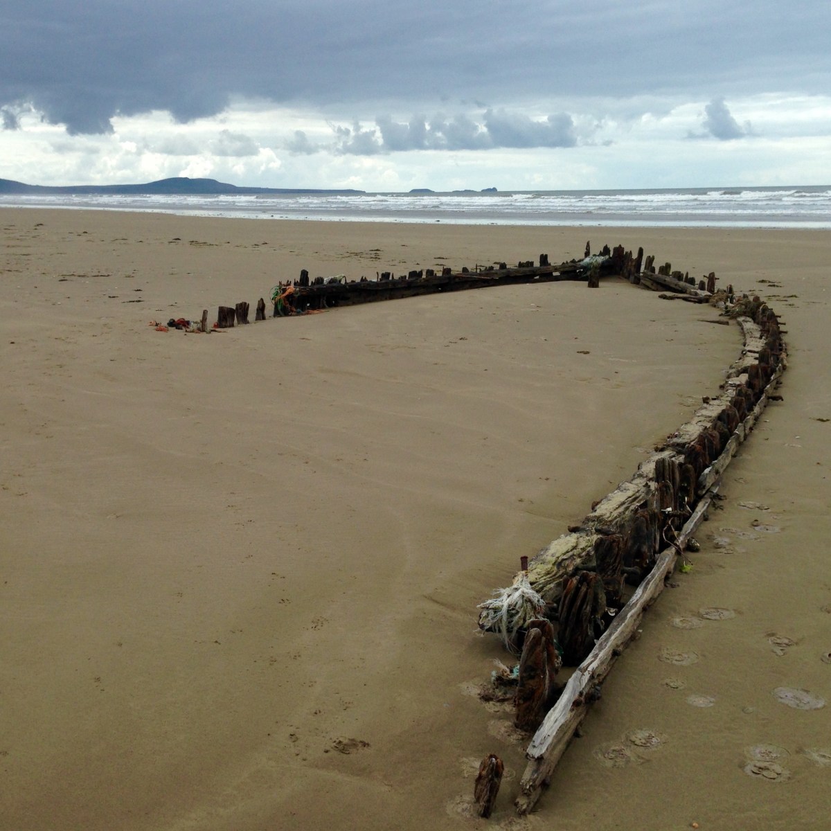 IMG-943 Published July 22, 2016 at 2357 × 2357 in WALK 25 : FROM LLANTWIT MAJOR, VIA THE GOWER, TO KIDWELLY. ← Previous Next → Shipwreck 1. Cefn Sidan Sands.