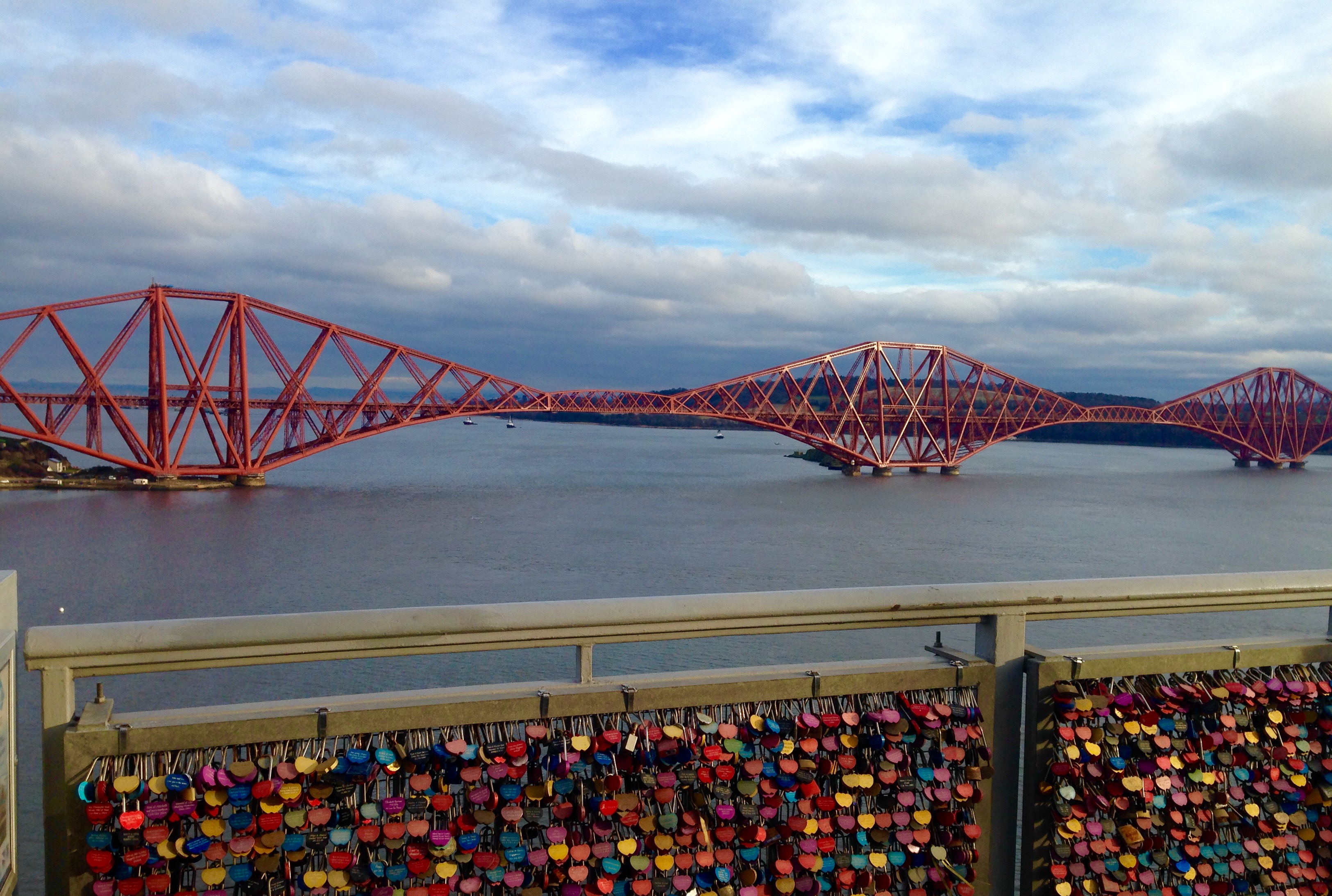 img-1210 Published February 10, 2017 at 3251 × 2187 in WALK 32 : SCOTLAND: THE FIRTH OF FORTH TO THE FIRTH OF TAY. ← Previous Next → Lovers’ locks Forth Road Bridge, looking towards the Rail Bridge.
