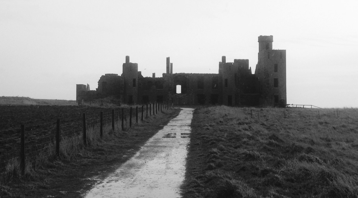 IMG-1284 Published March 22, 2017 at 1817 × 1006 in WALK 34 : SCOTLAND: FROM ABERDEEN TO PORTSOY. ← Previous Next → Slains Castle, silhouetted against low mist.