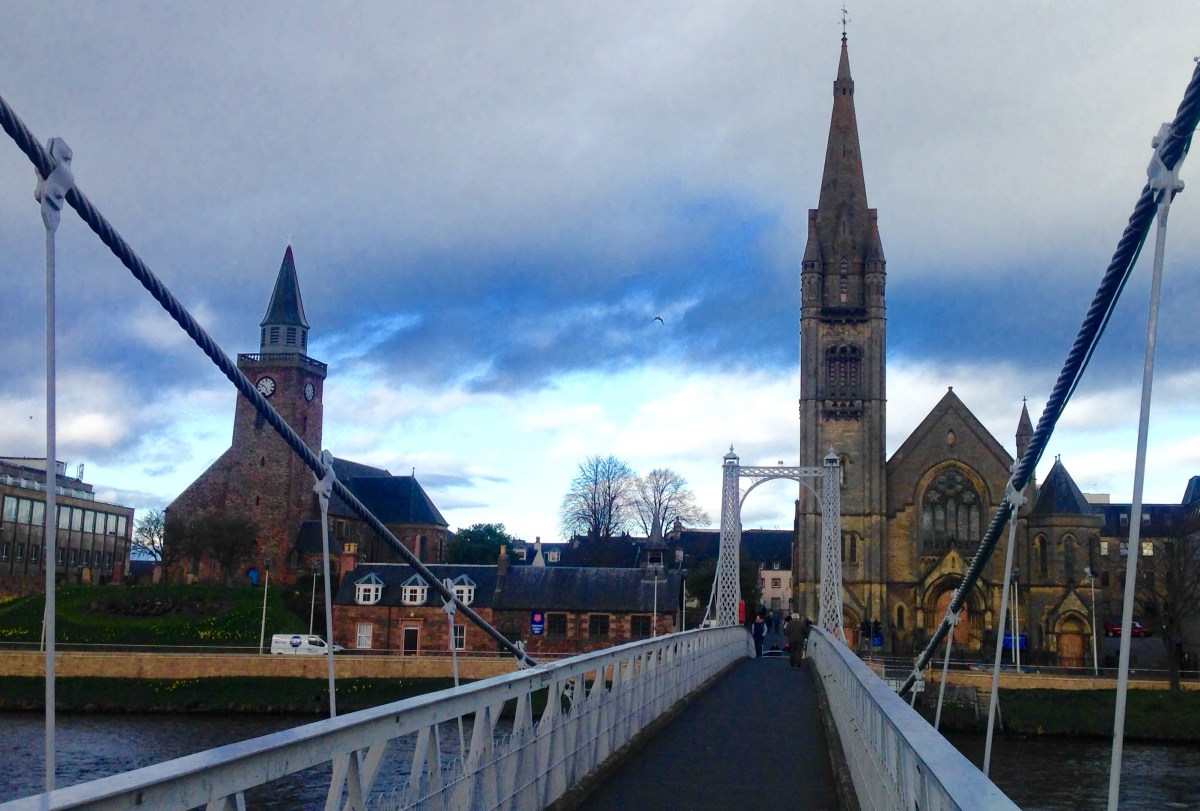 IMG-1321 Published April 20, 2017 at 2803 × 1896 in WALK 35 : SCOTLAND: FROM PORTSOY, VIA INVERNESS, TO THE SUTORS OF CROMARTY. ← Previous Next → Inverness, from the pedestrian bridge over the River Ness.