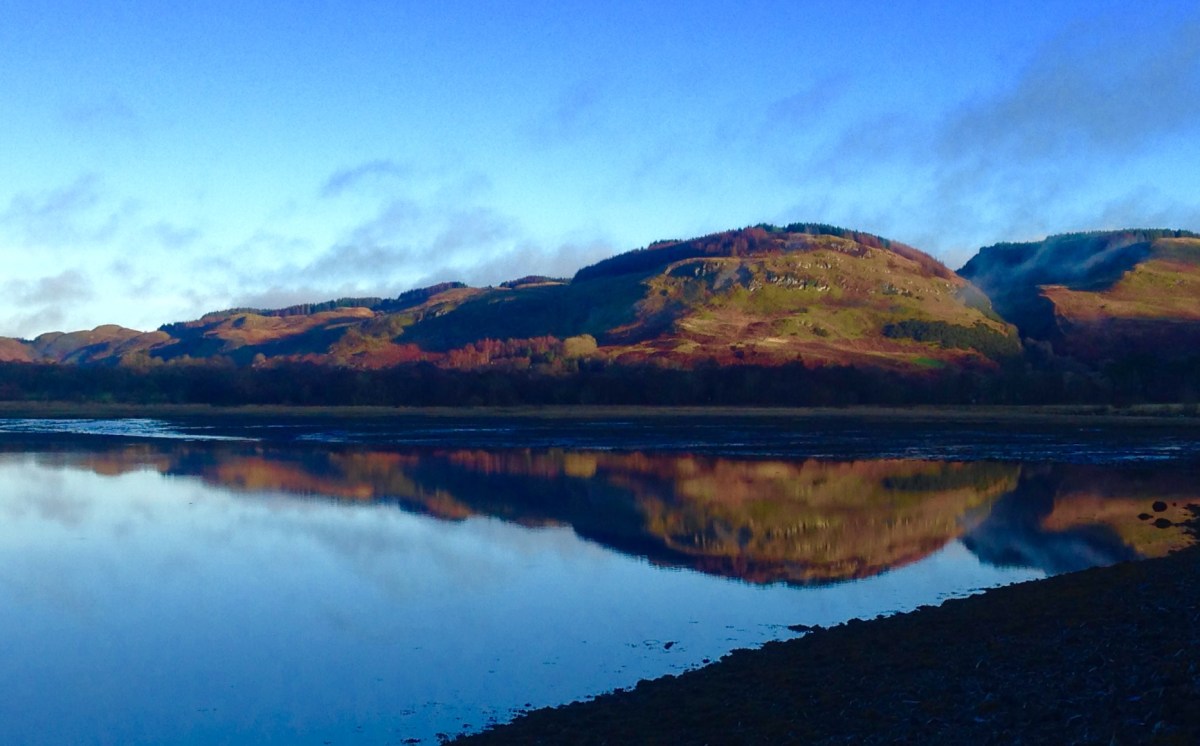 IMG-1690 Published December 29, 2017 at 1866 × 1161 in WALK 46 : SCOTLAND: FROM OBAN TO TARBERT, VIA LOCHGILPHEAD. ← Previous Next → Early morning reflections in Loch Feochan.