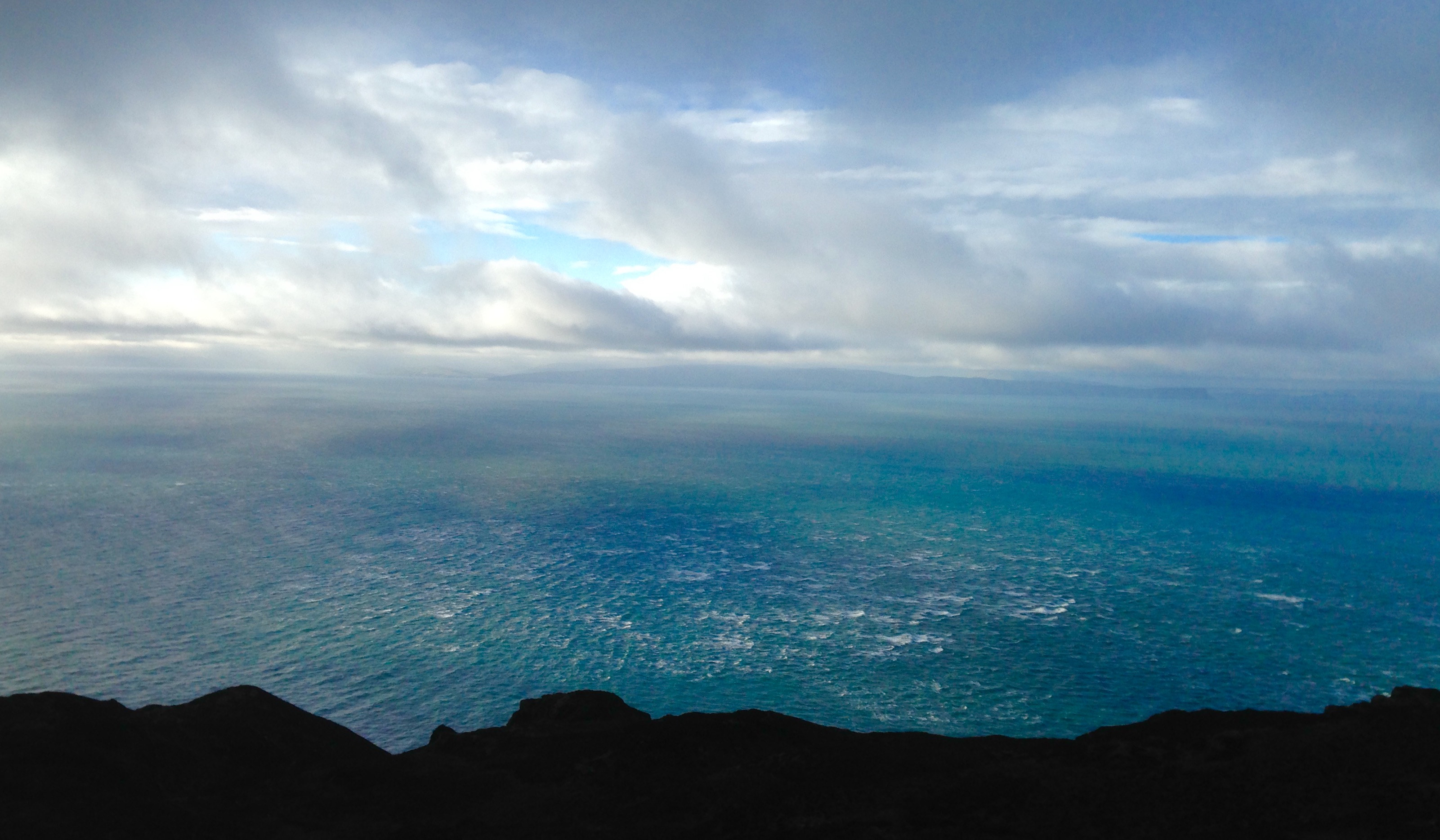 IMG-1708 Published February 7, 2018 at 3202 × 1869 in WALK 47 : SCOTLAND: FROM TARBERT TO CAMPBELTOWN & THE MULL OF KINTYRE, AND BACK TO TARBERT. ← Previous Next → From the old radio station at Torr Mor on the top of the Mull. The coast of Northern Ireland just discernible in the distance.