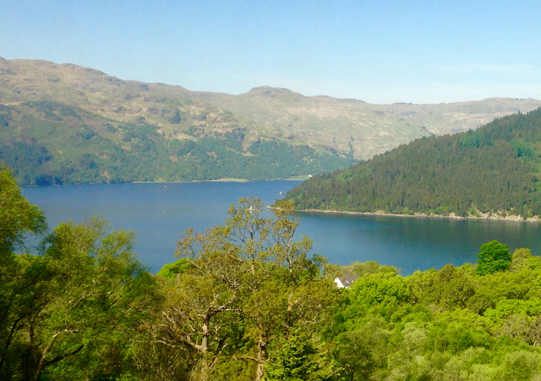 IMG.1827 Published June 10, 2018 at 1898 × 1336 in WALK 51 : SCOTLAND: FROM LOCHGOILHEAD TO MY JOURNEY’S END AT BOWLING HARBOUR, GLASGOW. ← Previous Next → Same view, different day: from Portincaple to the point where Loch Goil and Loch Long meet.